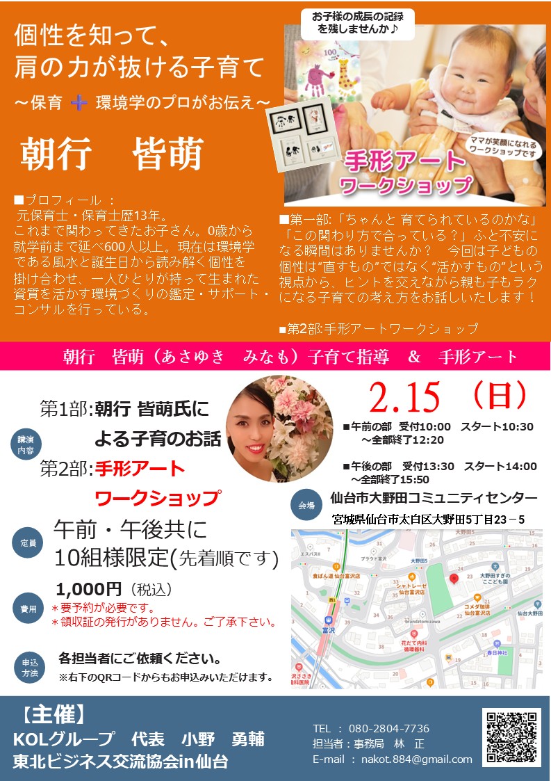 この「【子育て指導 & 手形アート】個性を知って肩の力が抜ける子育て会」は